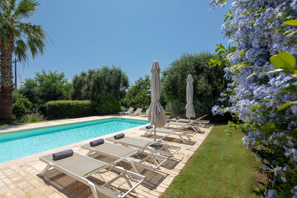Villa Pearl is a luxurious and stylish villa of 210m², located in a prominent position on a 1,1 acre garden full of olive trees, palm trees, various citrus trees and other fruit trees, as well as many kinds of flowers, overlooking the sea, with a large stone-paved 300m² terrace stretching out in front of it, a “secret” garden with stunning views of the sea and a private pool of 45m². An excellent choice for those seeking to indulge themselves with some peaceful quality time in their holidays.